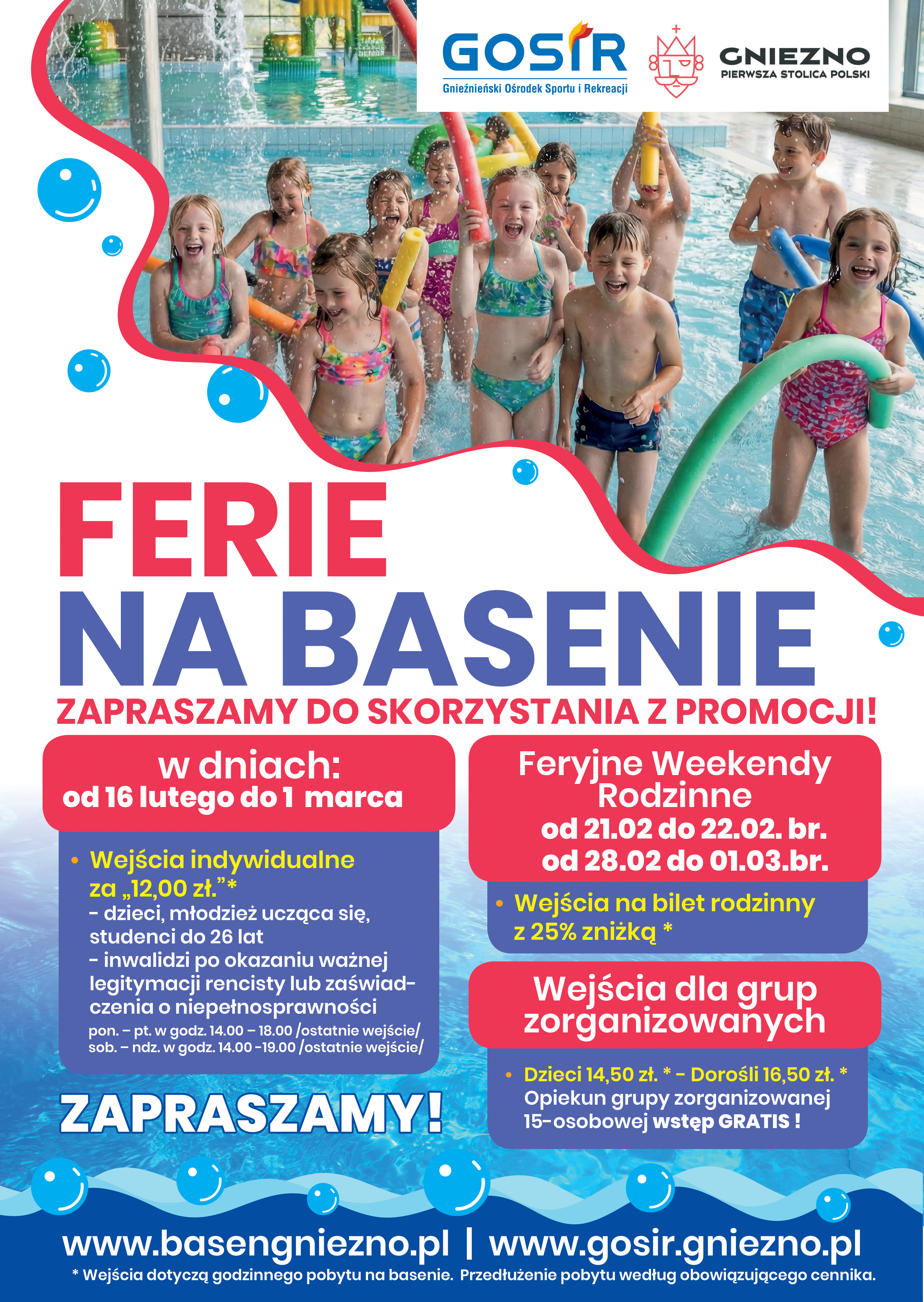 To doskonałe miejsce, żeby spędzić czas z rodziną lub znajomymi, rozgrzać się w wodzie i odpocząć od zimowej pogody.Na czas ferii przygotowaliśmy specjalne promocje i atrakcyjne ceny, więc warto skorzystać!