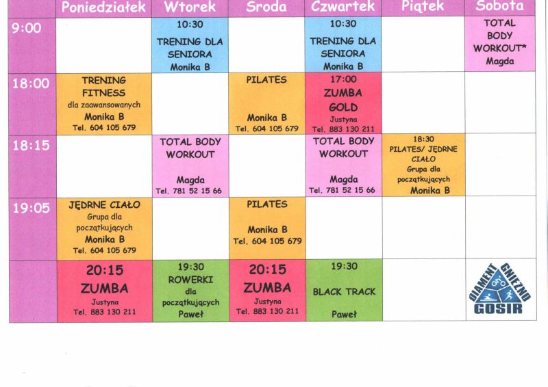 Oto jak prezentuje się szczegółowy harmonogram zajęć :