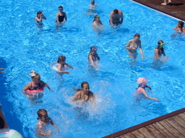 Były konkurencje sportowe, zajęcia z aqua-aerobiku, zabawy dla dzieci. Udział w nich mógł wziąć każdy kto tego dnia / w sobotę/ korzystał z uroków pięknej pogody i relaksował się na naszej plaży na basenach odkrytych.